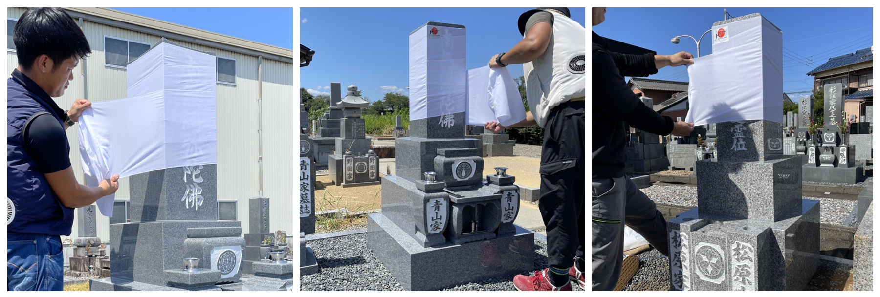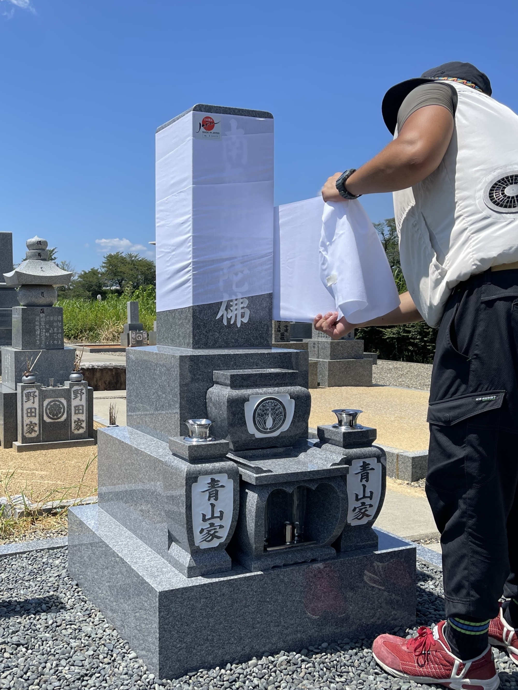 地震や経年によるズレ・傾きを防ぐため、加工方法や基礎工事にこだわった施工を行っています。見えない部分まで丁寧に仕上げ、長く安心できるお墓づくりを大切にしています。